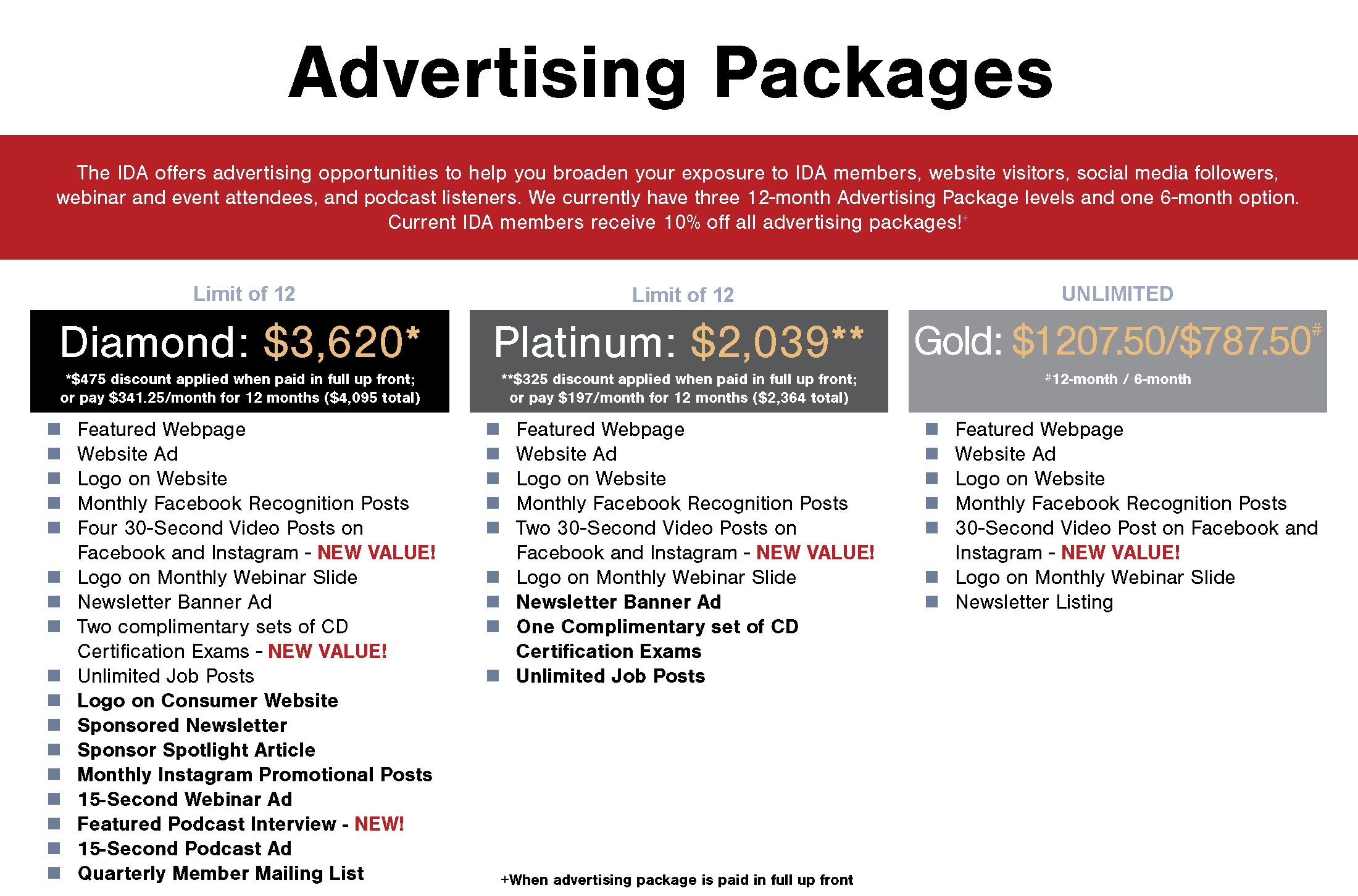 Current IDA members receive 10% off all advertising packages!+